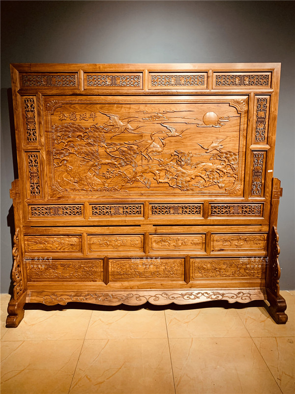 2.16米松鹤延年屏风 A006烫蜂蜡