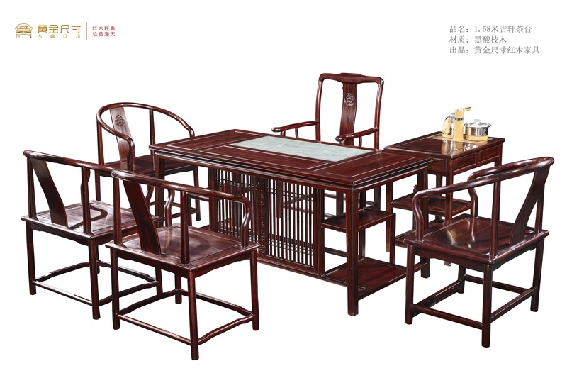 1.58米吉轩茶台1张,明式主椅1张,圈椅4张,茶水边几1张