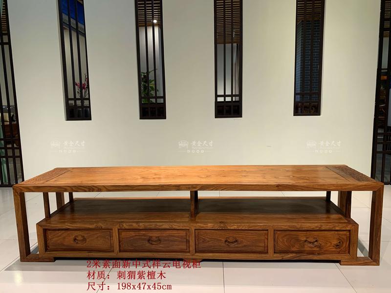 2米素面新中式祥云电视柜 A55烫蜂蜡
