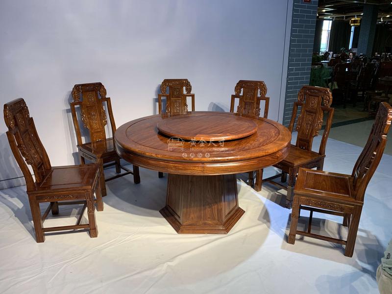 1.38米通板圆台1张,转盘1个,象头餐椅8张.