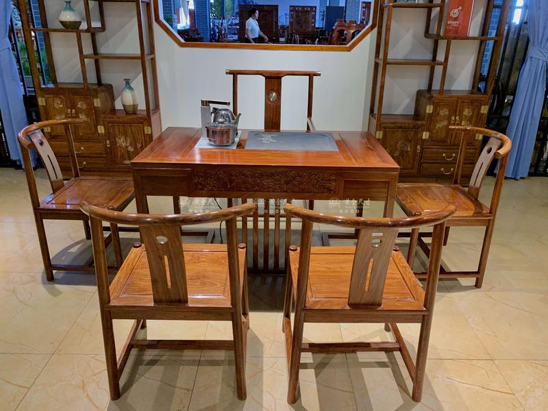 1.18米小祥云茶台+新中式椅+小半圈椅4 A18蜜蜡