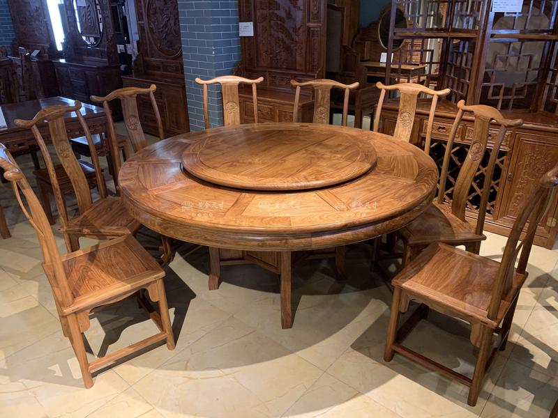 1.58米素面圆台【普通脚】+官帽餐椅 A18烫蜂蜡