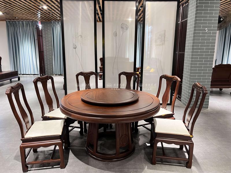1.38米圆梦圆台1张,转盘1个,素面荷韵餐椅8张.