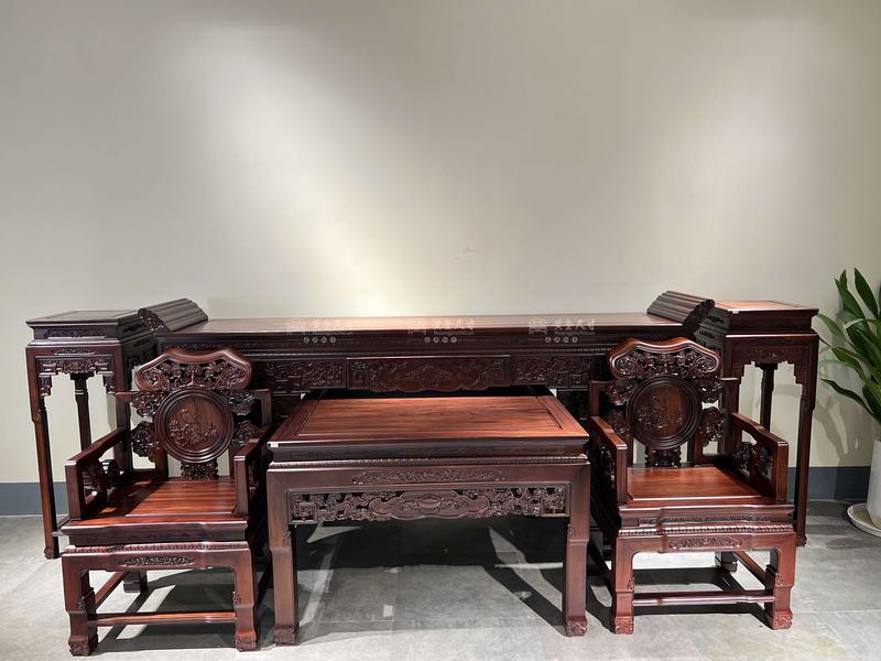 中堂桥台1个;八仙桌一张;花架2个;灵芝椅2张