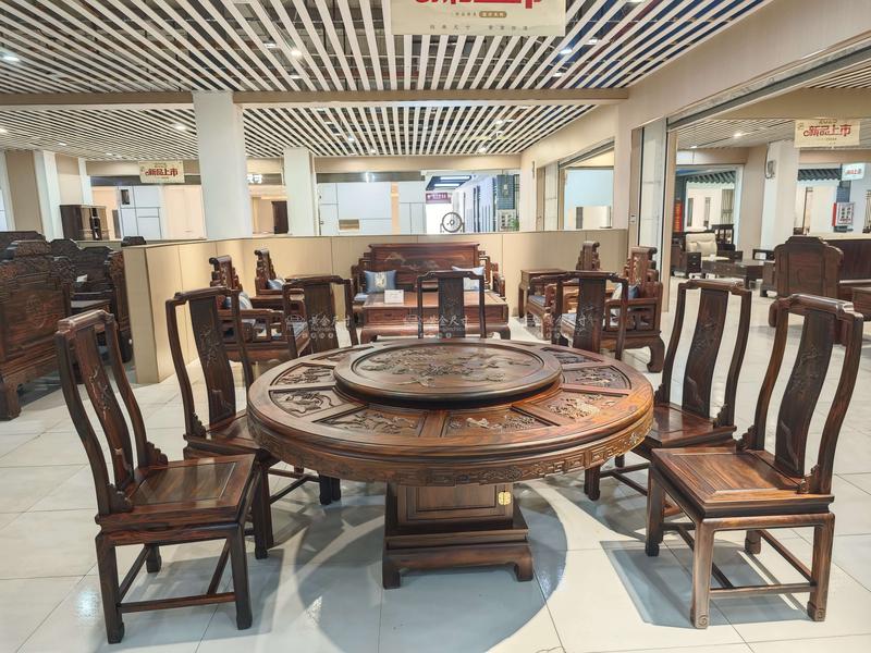 1.58米深雕孔雀圆台+10张餐椅