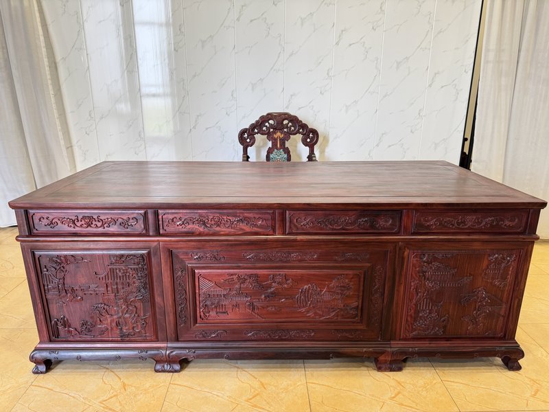 2.2米山水办公桌+①张西番莲太师椅