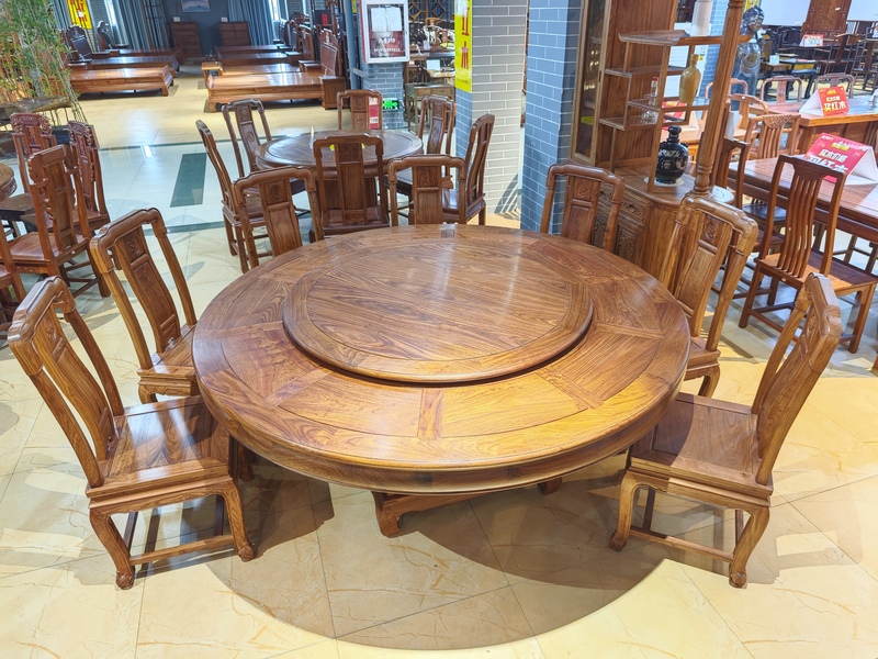 1.8米带柜门素面圆台+10张玫瑰脚国色椅