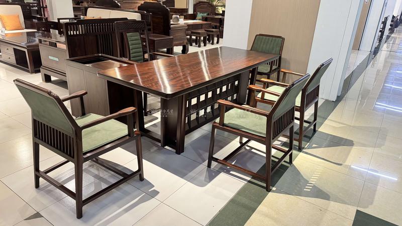 2.2米半闲干泡茶台1张;靠包主椅1张;靠背椅4张